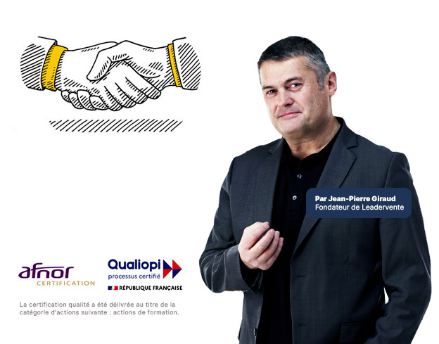 Mais nous le savons par expérience : si vous réalisez parfaitement toutes les étapes les unes après les autres, vous faites la différence et êtes quasi-certain de remporter l’affaire face à vos concurrents. L’objectif de cette formation est de structurer votre méthode de vente intégrale, en utilisant les techniques d’un expert ayant fait partie du Top 1% des meilleurs vendeurs France d’une entreprise du CAC40. Notre méthode de vente a fait réussir de nombreux Sales et entrepreneurs. Vous aussi, apprenez les bonnes techniques et soft skills pour accroitre votre taux de closing. Je vais réfléchir. Je dois comparer. C’est trop cher. Je dois en parler à… Apprenez à traiter les objections habilement et avec doigté, pour atteindre vos objectifs de vente. Peu de Sales ont une méthode robuste. Apprenez à faire vivre une expérience commerciale d’exception à vos prospects, et cueillez les fruits qui vont avec. La vente est une course en plusieurs étapes. Apprenez à faire partie des meilleurs Sales, décrocher le maillot jaune, et le conserver jusqu’au closing. En 2004, il devient intervenant expert. Formateur premium et manager de transition, il apporte chez ses clients des consolidations et croissances de CA de +10% à +30%. Personnalité singulière dans le monde du business, il est autant apprécié pour sa maitrise de la science commerciale que pour sa capacité à embarquer les équipes dans une nouvelle dynamique. Après avoir participé au lancement de plusieurs marques et accompagné des dizaines de clients, il cofonde la marque Leadervente en 2016, spécialisée en Sales et Growth marketing. Aujourd’hui, Leadervente c’est 1000+ alumni formés, 10M+ écoutes sur le web, 100k+ followers dans 25 pays. Durant toute la formation, le formateur répond à toutes vos questions, revient sur les points clés et les exercices produits, et partage ses best practices. Modalités d’accès : entrée et sortie permanente. Certifié Qualiopi, Leadervente vous accompagne dans les démarches administratives en réalisant à vos côtés toutes les pièces nécessaires à la prise en charge de votre formation. Pour anticiper et étudier ensemble la prise en charge de votre formation jusqu’à 100%, demandez à être rappelé par un spécialiste financement de notre équipe. « Organisme de Formation avec lequel j’ai travaillé plusieurs fois sur les thématiques commerciales dont ils sont spécialistes. J’apprécie tout particulièrement la qualité des programmes, la rigueur du suivi & la disponibilité de l’équipe. Au Top : ) » « Leadervente a contribué à la synergie entre les commerciaux, à des rapprochements entre la vente et le marketing et a une communication commerciale harmonisée. Mais le plus bénéfique reste le taux de transfo : je valide + 25% totalement liés à la méthodologie. » « Tout le process de vente a été retravaillé dans notre entreprise. La formation est intense mais les résultats sont là : +30% de CA sur l’exercice qui a suivi. Nous resouscrivons pour la 3ème fois prochainement. » « On a fait une progression d’à peu près 30% l’année dernière dans mes équipes. Je pense qu’il s’agit d’un ensemble de choses, et effectivement le niveau des commerciaux s’est enrichi grâce à la formation de Leadervente. » « Formations très détaillées, rigoureuses et professionnelles couvrant l’ensemble du processus de prospection – vente, accompagnées de l’enthousiasme inépuisable de l’équipe. » « Les objectifs de la formation ont été atteints. Chacune des trois sessions a été de grande qualité et a fait l’unanimité des équipes. La méthodologie mise en œuvre a contribué à ce « plus » recherché en termes de professionnalisation. Les outils conçus sont pertinents, avec des résultats terrain qui se font immédiatement ressentir. » « A la base nous avions besoin de booster notre CA en optimisant nos performances en prospection et en conclusion de vente. Bilan : la formation est de qualité et aborde bien tous les points essentiels. Ce qui est agréable, c’est que nous mesurons que nous sommes bien mieux reçus par nos prospects et clients. » « Résultats : taux de transformation plus important en prise de rendez-vous et en signature. Argumentaire plus efficace et donc plus de confiance au téléphone. Découverte beaucoup plus approfondie en rendez-vous, facilité à cerner de manière ultra-précise le besoin du client. Sur le fond c’est très complet, très précis, carré, pertinent. J’adore. Merci. » « Dans le cadre de ma création d’entreprise, j’ai souscrit aux formations « Prospection & cold calling » et « Vente & closing » de Leadervente. Je mesure une progression considérable dans ma posture et dans mes argumentaires, beaucoup plus solides. » « Afin de muscler ma force commerciale, j’ai décidé de rejoindre plusieurs formations de Leadervente. Excellent investissement, j’enchaîne les contenus les uns derrière les autres, et j’en suis ravi. » « Je me suis offert une formation de Leadervente, et je suis très satisfait des résultats que cela m’a rapidement apporté. Leur méthode de prospection a radicalement changé ma façon d’approcher mes cibles clients. J’ai développé un portefeuille de 40 000€ / mois ; ce fut alors un réel soulagement dans ma vie professionnelle et personnelle. » « Je cherchais une formation en ligne sur les techniques de prospection (argumentaire téléphonique, traitement des objections…). J’ai trouvé avec cette formation un format qui me convient : des vidéos claires et synthétiques, des exemples concrets et une trace écrite pour retravailler l’ensemble à posteriori. Que ce soit au niveau du fond ou de la forme tout est là ! » « Le programme m’a déjà permis de mettre en œuvre une prospection téléphonique digne de ce nom pour décrocher des rendez-vous. J’ai appliqué avec méthode les d